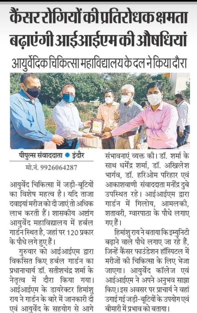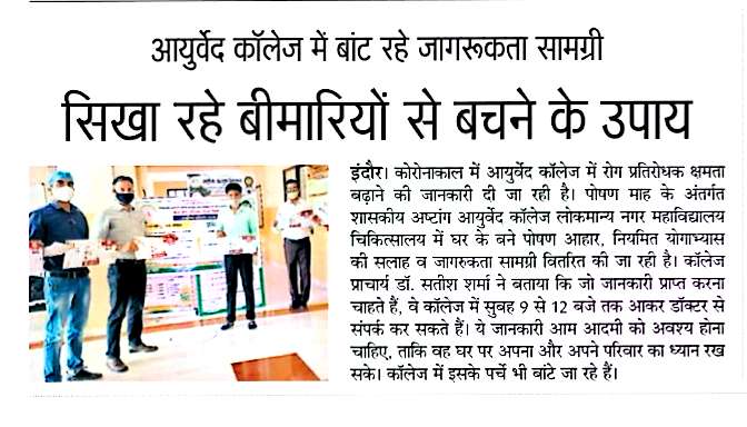 Government Autonomous Ashtang Ayurved College, Indore, was established on 12-12-1972 by the Ministry of Health and Family Welfare,Government of Madhya Pradesh to promote Ayurveda in the society. The college is situated at Lokmanya Nagar, Kesar Bagh Road, Indore. Our Institute has received Pt.Uddhav Das Mehta Vaidhya Shastri Ayurved Seva Samman Puruskar-2016,from Ministry of AYUSH, Govt. of Madhya Pradesh, for the excellence work done in the field of Ayurved.
